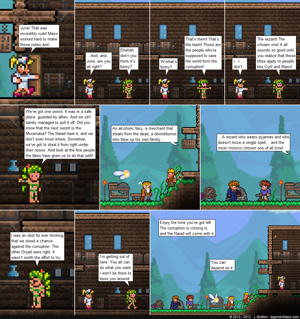 She was veeeery angry…like the Angry Video Game Nerd…She creeped me out the way where from laughing she left those who try to help the chosen one…I think the goblin invasion will be after that page…because they went to the jungle.But…Wait.They saw nude goblins (lol) in the corruption and nobody in the jungle…only dryads… 😛 Wtf? I wrote all of that before I go my first day to school?WOW!