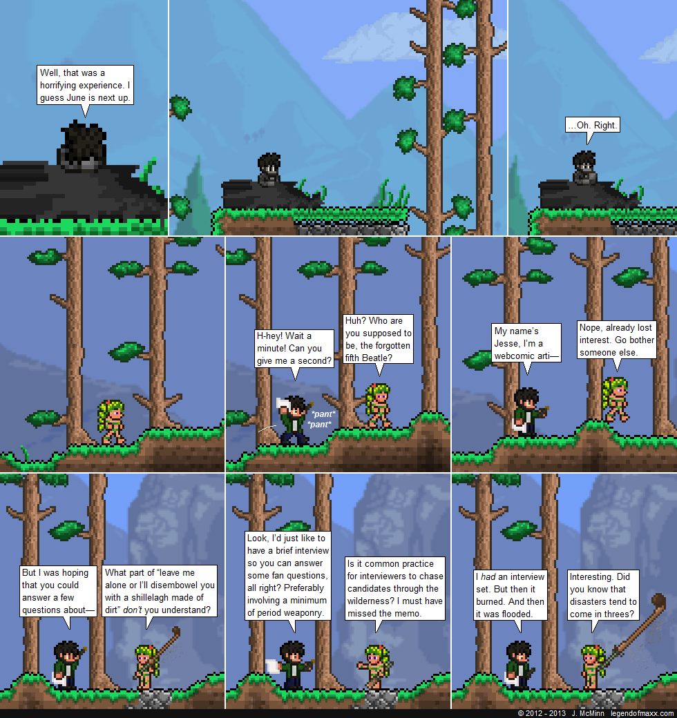 Man, I read this comic way too much. In my Terraria fanfic, I keep wanting to type in June as the dryad’s name even though it’s actually something else… :p