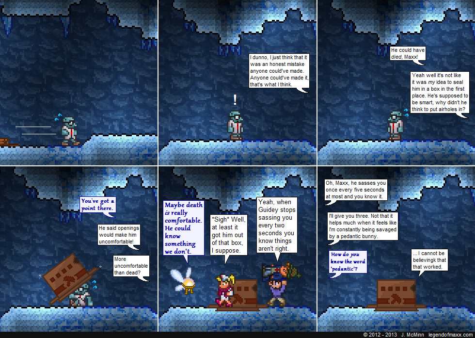 This comic seemed funny to me when I first came up with the script, but after making it I realized that it made less sense than originally considered, and revised it a little bit. Hopefully the end result makes sense.