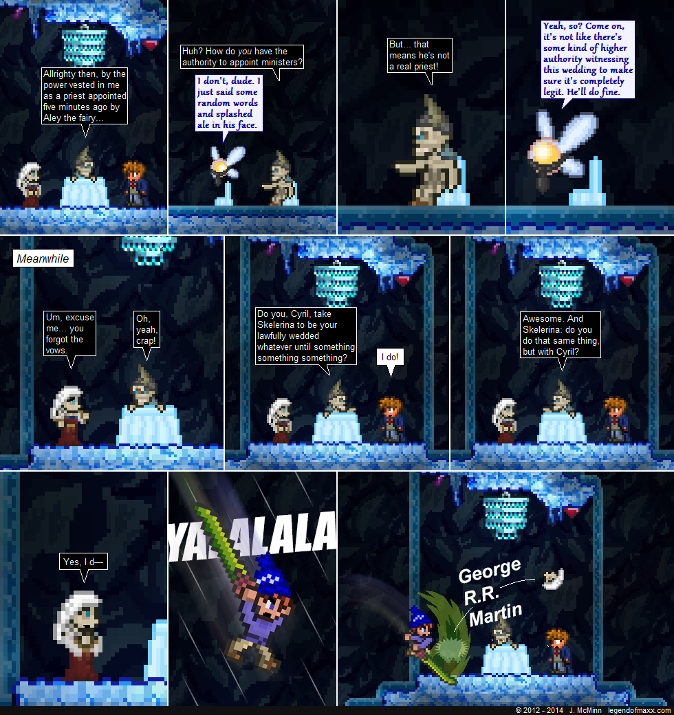 Jesse, “George R.R Martin” is the most hilarious sound affect in the comic. Actually, I’d go as far to say that it is the most hilarious sound affect I have seen ANYWHERE. And the most random one.