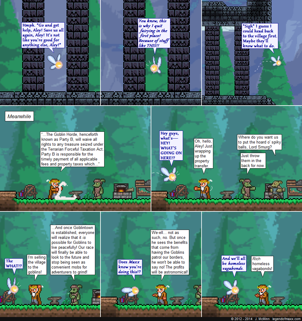 Merchant has become the new Maxx, according to his posture in the last panel. Aley, please get your act together! You’re starting to sound like Cyril! So far Smurg is a great goblin leader who remembers everyone’s names, although that’s what I liked about the Goblin Horde. The opposite of that, that is.
