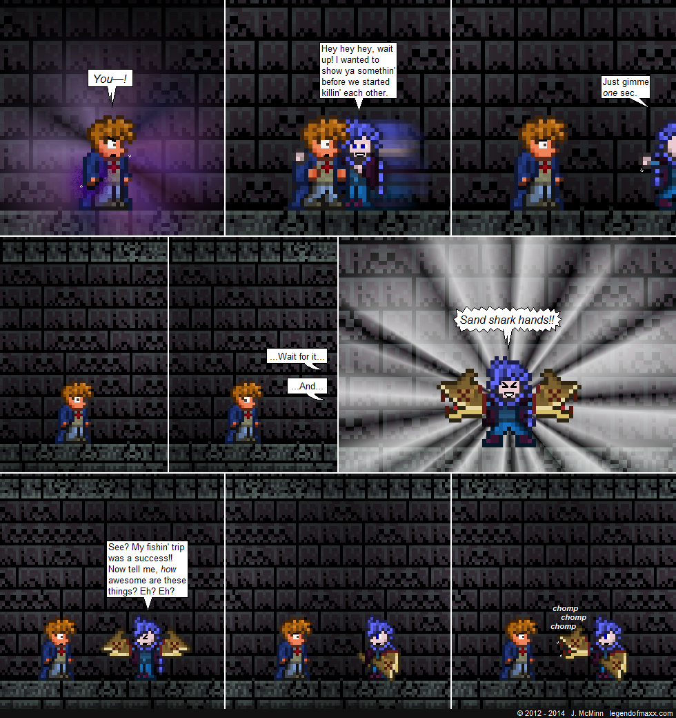 Lols LoM must have introduced the sand shark, even if A. They aren’t in hard mode yet and B. This is pre 1.3.2 (I may be wrong with the version number, but my point still stands.)