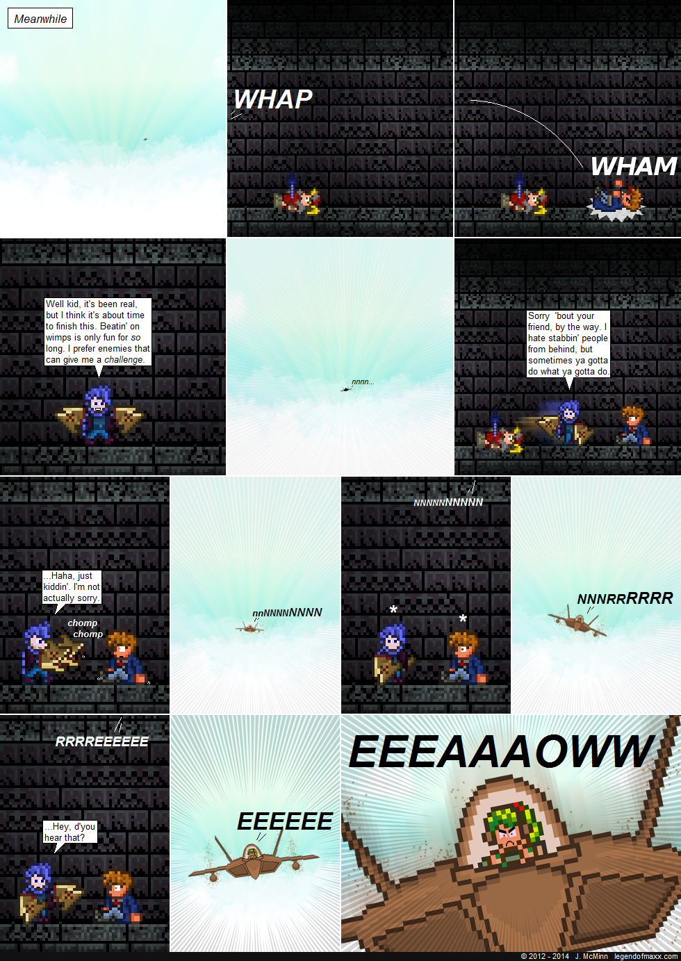 You really have to get better at pixel art, the face in the last panel is horrible.
