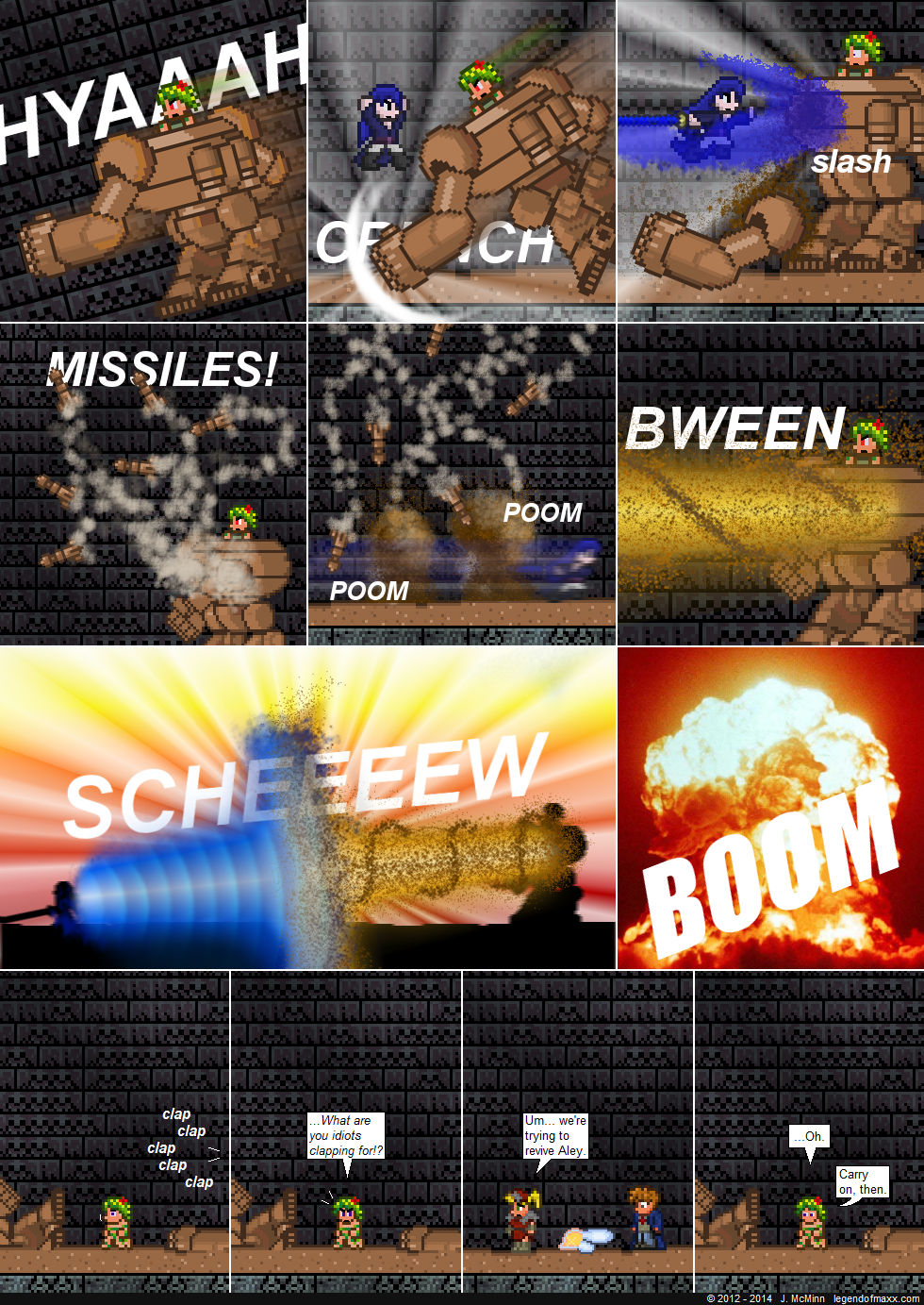 Battle scene! Man these comics take forever to make. I’m pretty happy with the end result, though. The comic’s special effects have gotten quite a bit better than what they used to be.