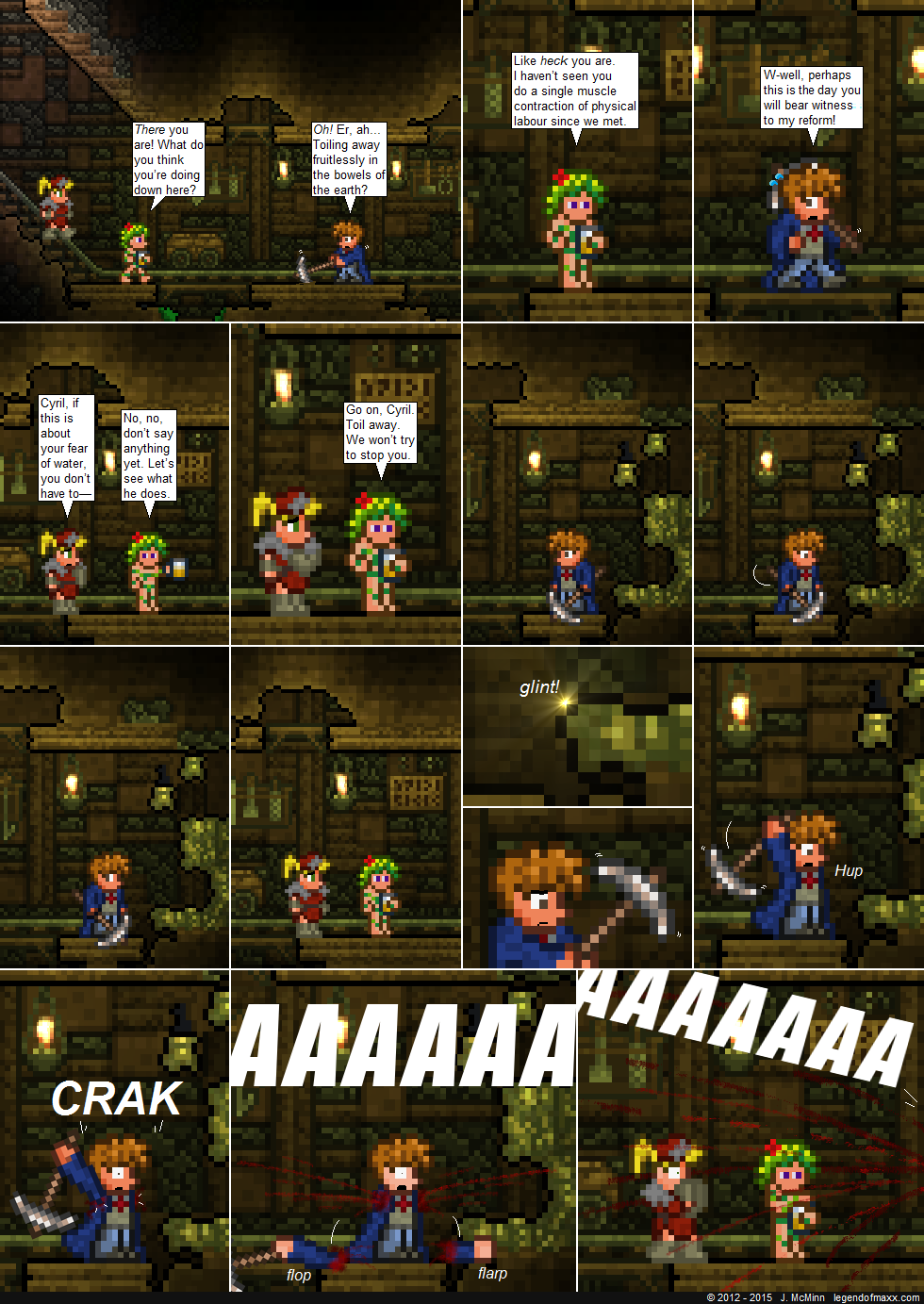 Forgot how… ummm… graphic these comics were. Then again, so is Terraria with how everything explodes into gore and the imagery of the death messages.