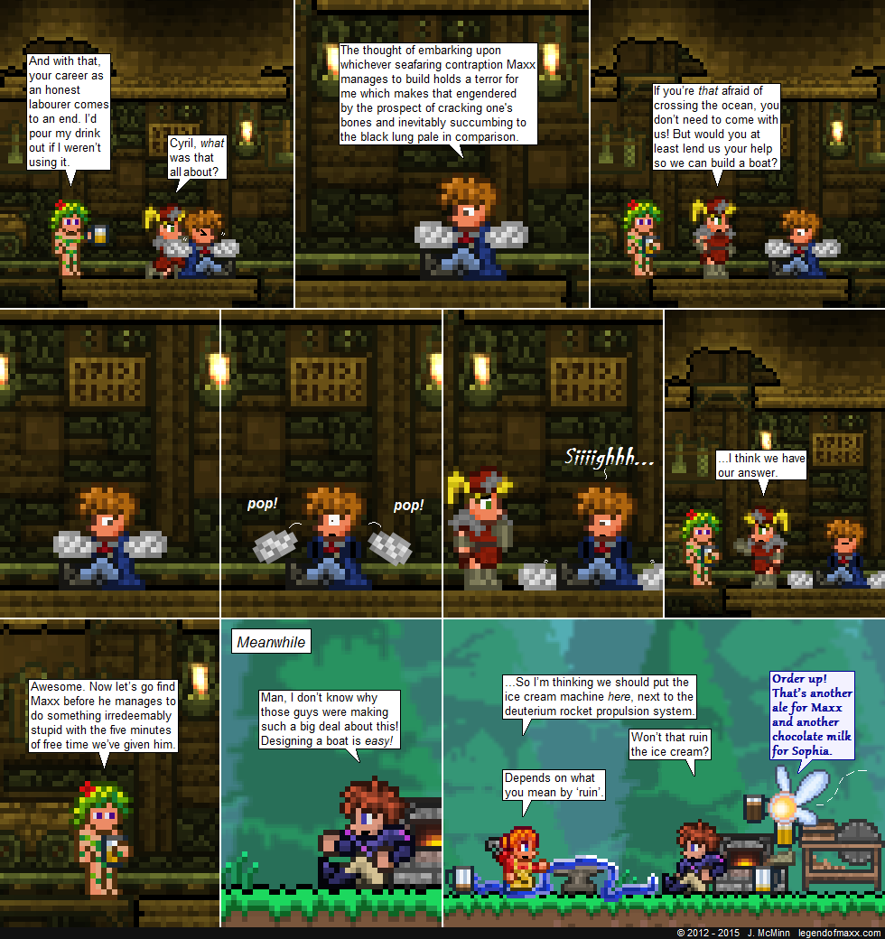 I was going to have both Sophia and Maxx drinking ale in the last panel, but decided that it just wasn’t Sophia’s bag. That being said, I’m sure that chocolate milk in her hands is as dangerous as alcohol is in anyone else’s.