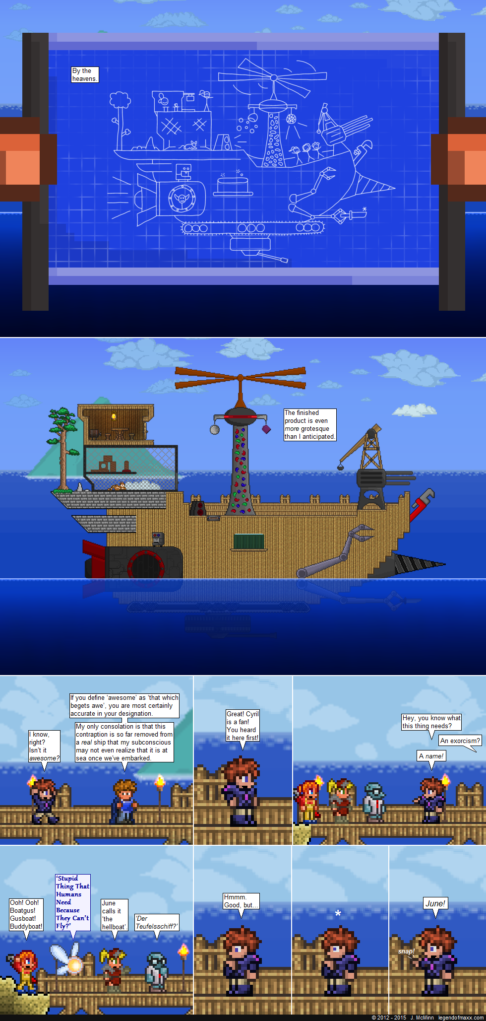 The boat should be renamed “existential crisis” after jonas starts to seek the meaning of his life and thus becoming intensely dissatisfied with his body, the ship. Jonas will also realise that this contraption is nowhere near the “awesome” level of his own brain. This will happen for sure, because Cyril is so dissatisfied with the ship that he thinks it requires an exorcism.