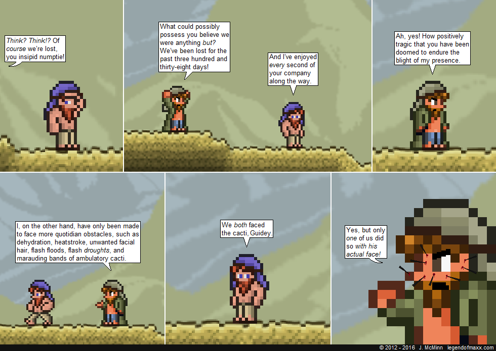 Whatever happened to Guidey being stabbed? Look back to Comic 510. Xane becomes a jerk again and stabs Guidey.