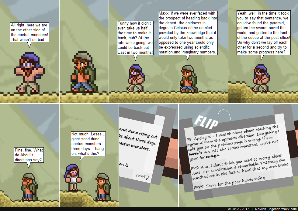 Jesse. Your comic is amazing. It brought life to Terraria. I find myself calling the Dryad June, and the guide Guidey. I really love your comics. Please continue to make them