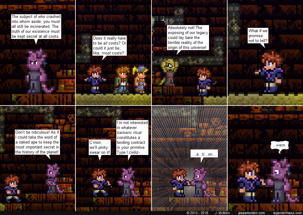 I will forever be amazed by the degree to which the comic has a mind of its own. Almost everything about the Lihzahrd – from how many of them there are to their personalities to what happens when they meet Maxx and co. – ended up different in the comic than how I pictured it in my mind.