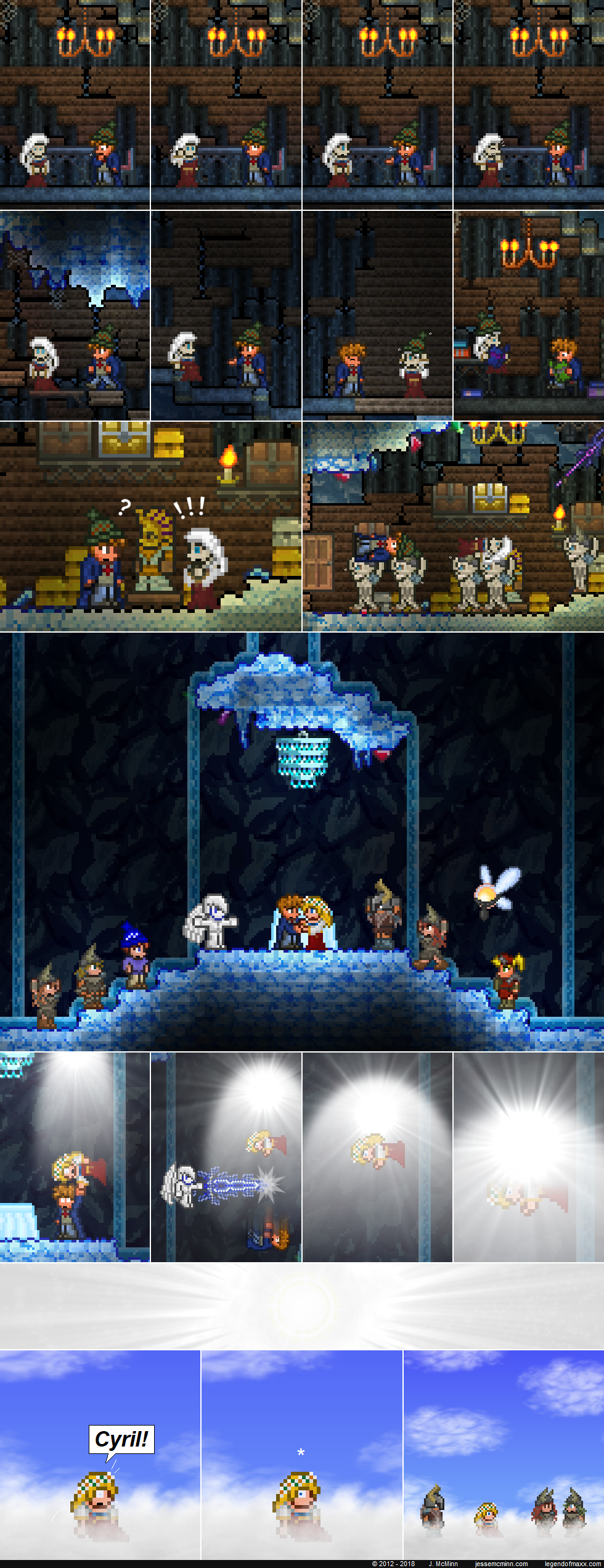 IF THIS COMIC GETS TO THE CONFRONTATION OF MOONLORD, TERRARIA:OTHERWORLD AND TERRARIA 2 WILL BE ALREADY RELEASED AND TERRARIA WOULD BE AT 1.6.5.
