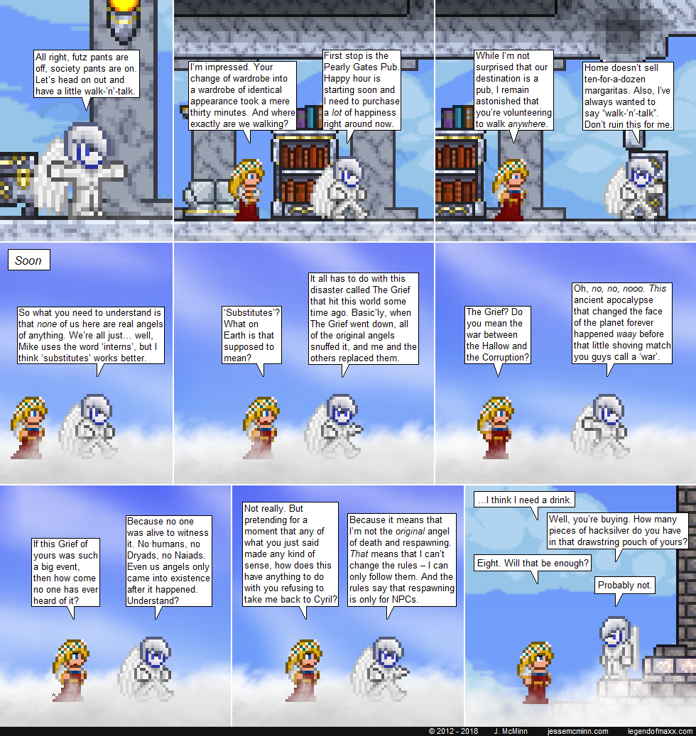 Remiel’s line in the second last panel clears things up for me (my question as to why some people respawn and some don’t). Thanks for the fulfilling comic strip.