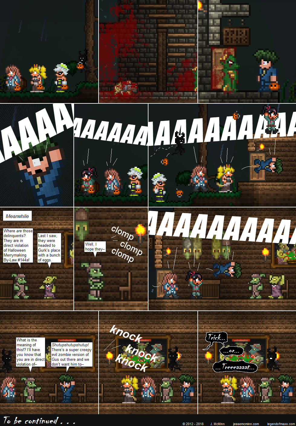 You’re absolutely right, thank goodness another comic. I am talking to Valdus, but yeah its also absolutely trick. Well at least horrible monster versions of the protagonists are keeping halloween tradition. Some constant light in this void of pixelated darkness…
