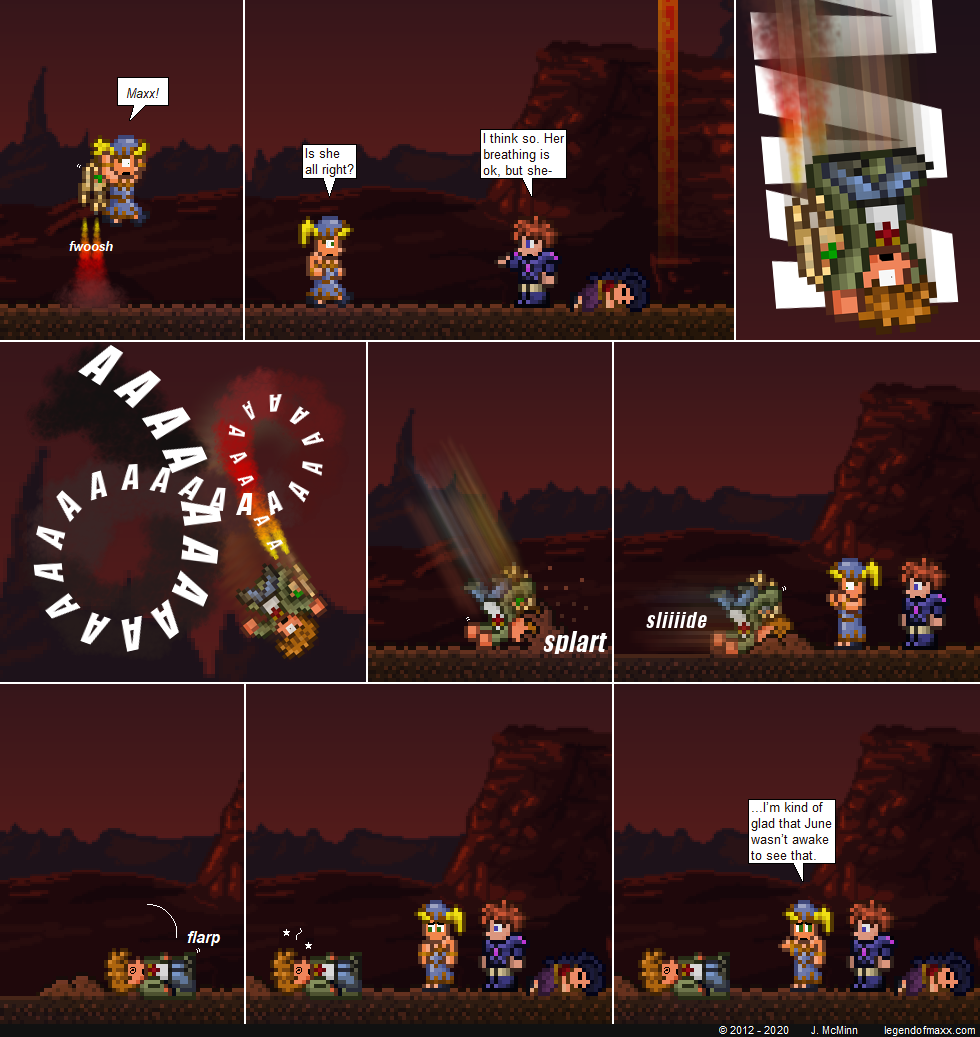 If the last comic was all about ambition, then this comic is all about detail. I spent a lot of time on Cyril’s posing and his interactions with the environment to (hopefully) increase the impact of the physical humor. It’s the kind of comic that’s very hard to do with tiny little sprites, so hopefully it’s a success!