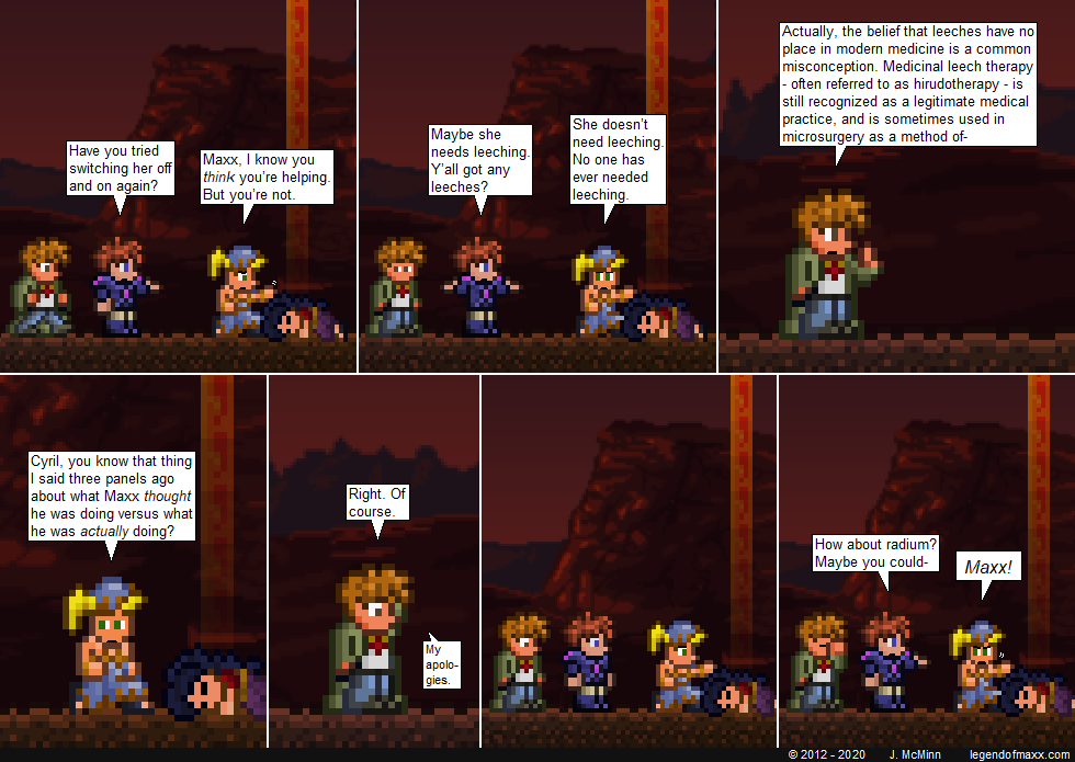 Whoever said that The Legend of Maxx wasn’t educational? Today we learned the medical term for leech therapy!