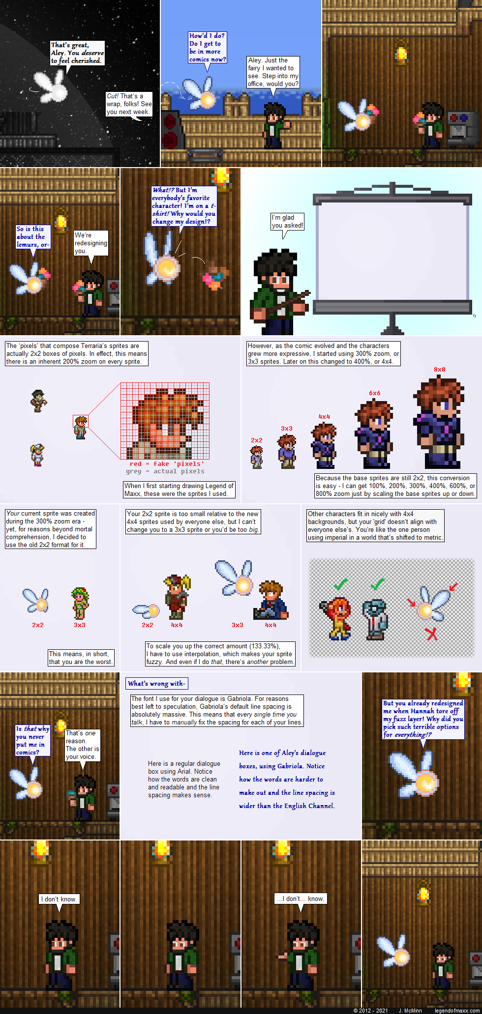 That’s right, folks, Aley is getting a redesign! I’m not sure if you could tell from my manic expression in panel 6, but I’ve been looking forward to this for a while. I’m going to miss the old sprite, but it was just too darn annoying to deal with. I honestly expect Aley to get more screentime as a result of this change.