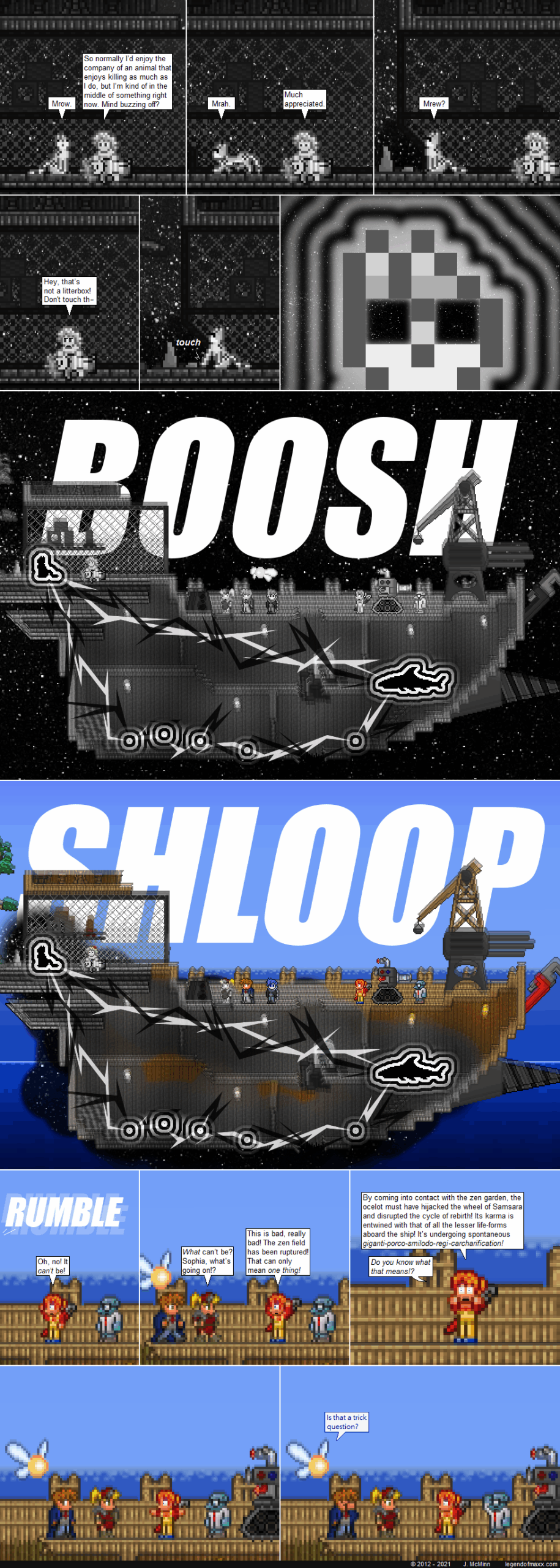 Cyril knows what Sophia’s on about, he just doesn’t wanna be the guy to say it. It does mean something, by the way. Terraria players who are able to decode Sophia’s technobabble should have an idea of what’s coming next!