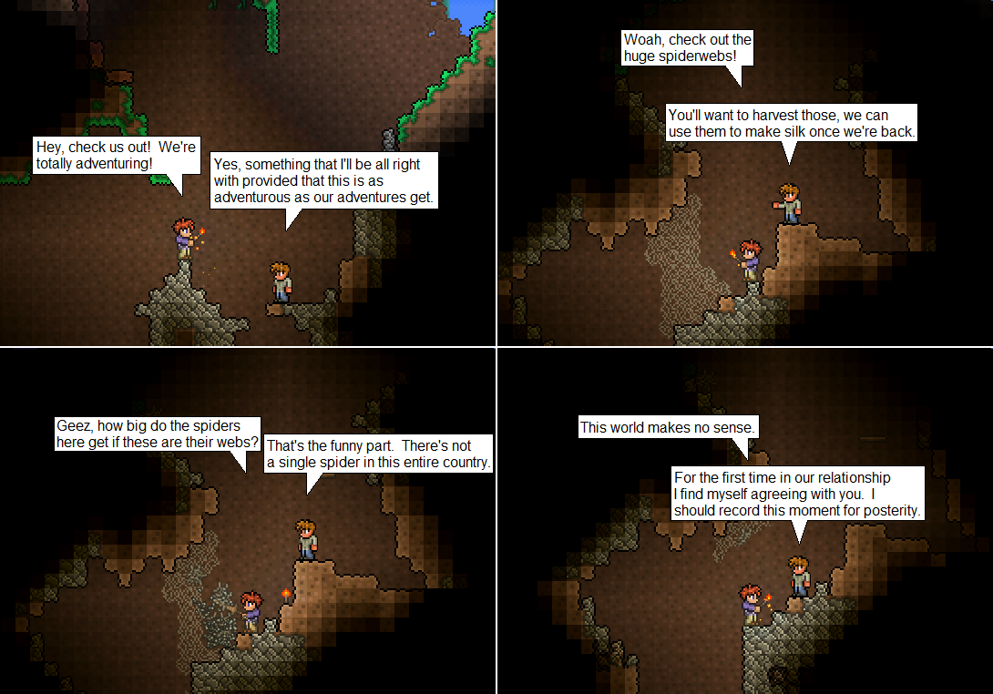 If only there still weren’t spiders… I hate Terraria spiders. Except Man-Spider.