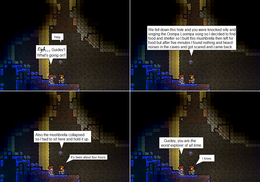 terraria fan December 27, 2015 at 5:44 pm imagine ciryl (the guides name if you havent gotte that far yet) sayin that stuf in the 2nd slide really fast ITS ILARIOUS XD XD XD XD
