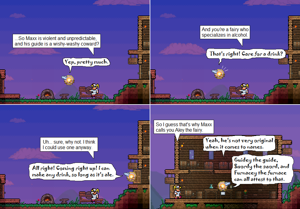 Anyway, on to the comic! This is actually one of those cases where I’m poking fun at myself; I have a tendency to give things the lamest, most un-creative names of all time. After all, it was actually me who gave birth to Guidey the guide.