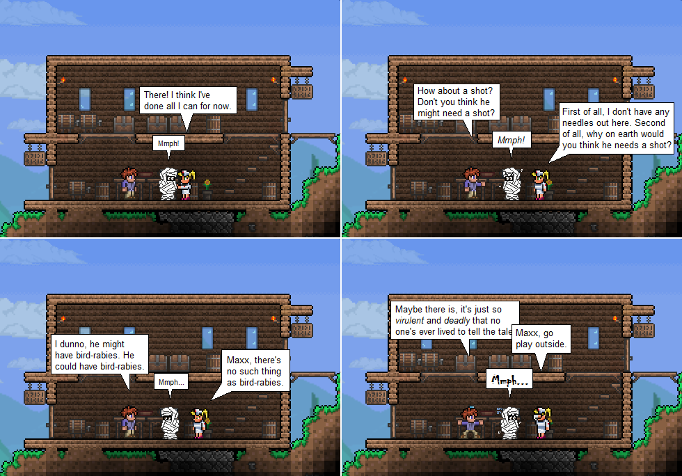 This comic has been a learning experience for me. For instance, after writing the bit about bird rabies I realized that I didn’t know if there was such a thing as bird-rabies. Thankfully, there is not. Otherwise I would have had to redo the comic! And I guess a lot of birds would have died too.