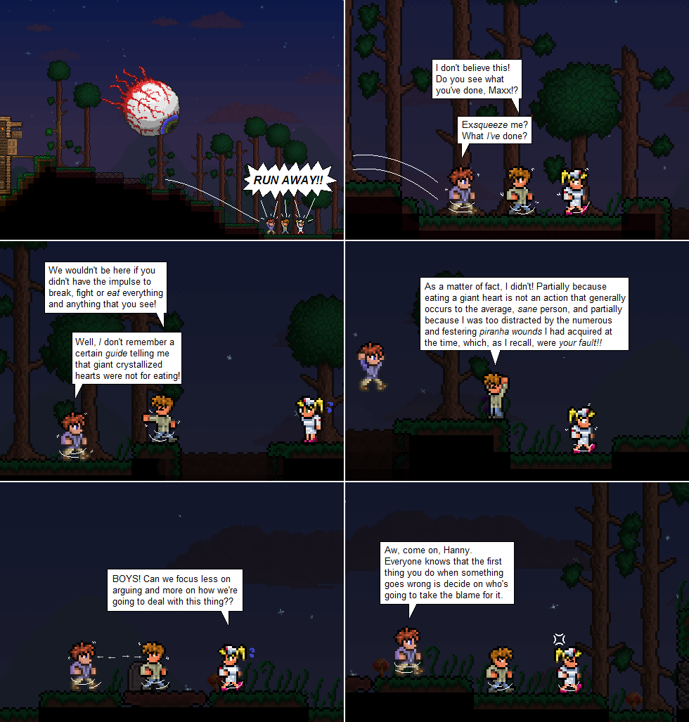 Fun Fact: there actually is one specific Terraria world I use to set all the scenes, so if you were to load it you’d be able to find all the places visited by Maxx and Guide in the comic! The only exception is the Pearly Gates Pub, which is in my original (hardmode) world.