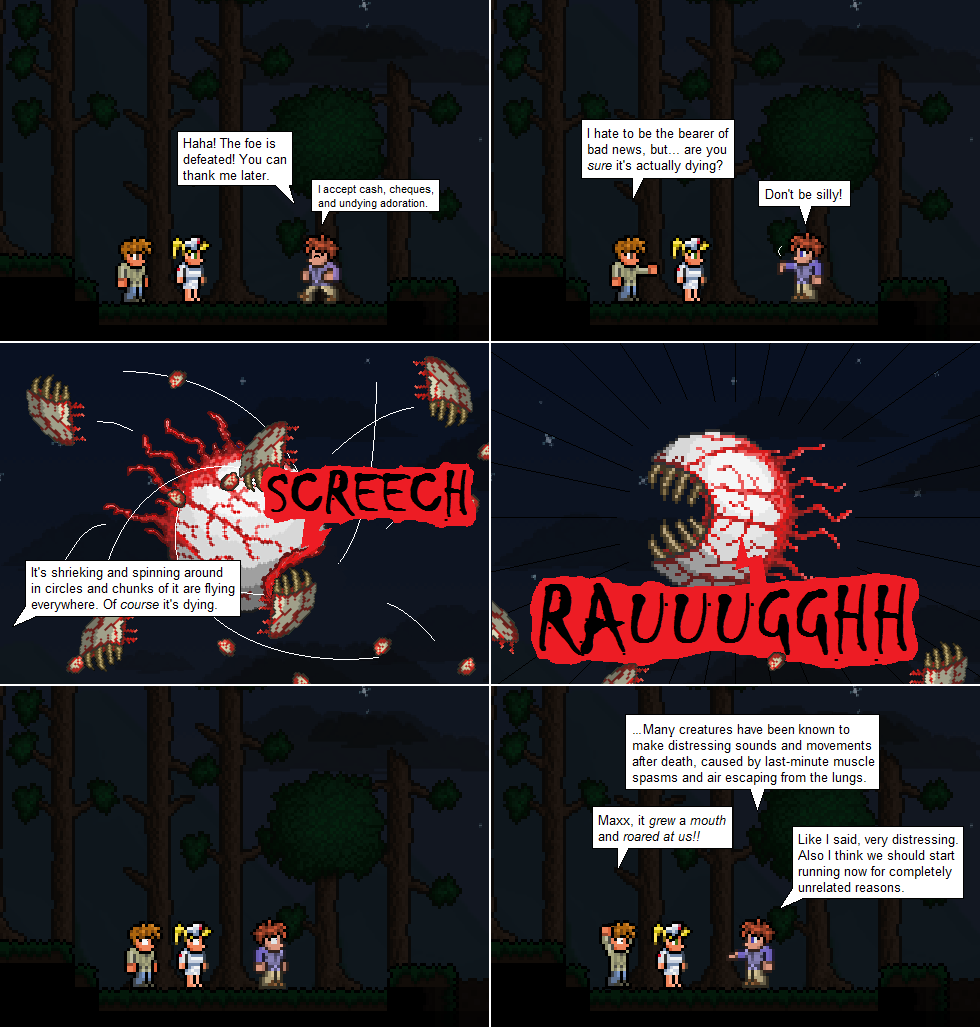 I have to agree with Maxx in that spinning around throwing chunks of yourself everywhere usually is a good indication of impending death, both in the world of video games and in the real one.
