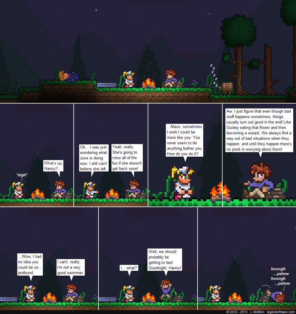 When the going gets tough, the tough fall asleep. I like how the atmosphere of the first panel worked out,