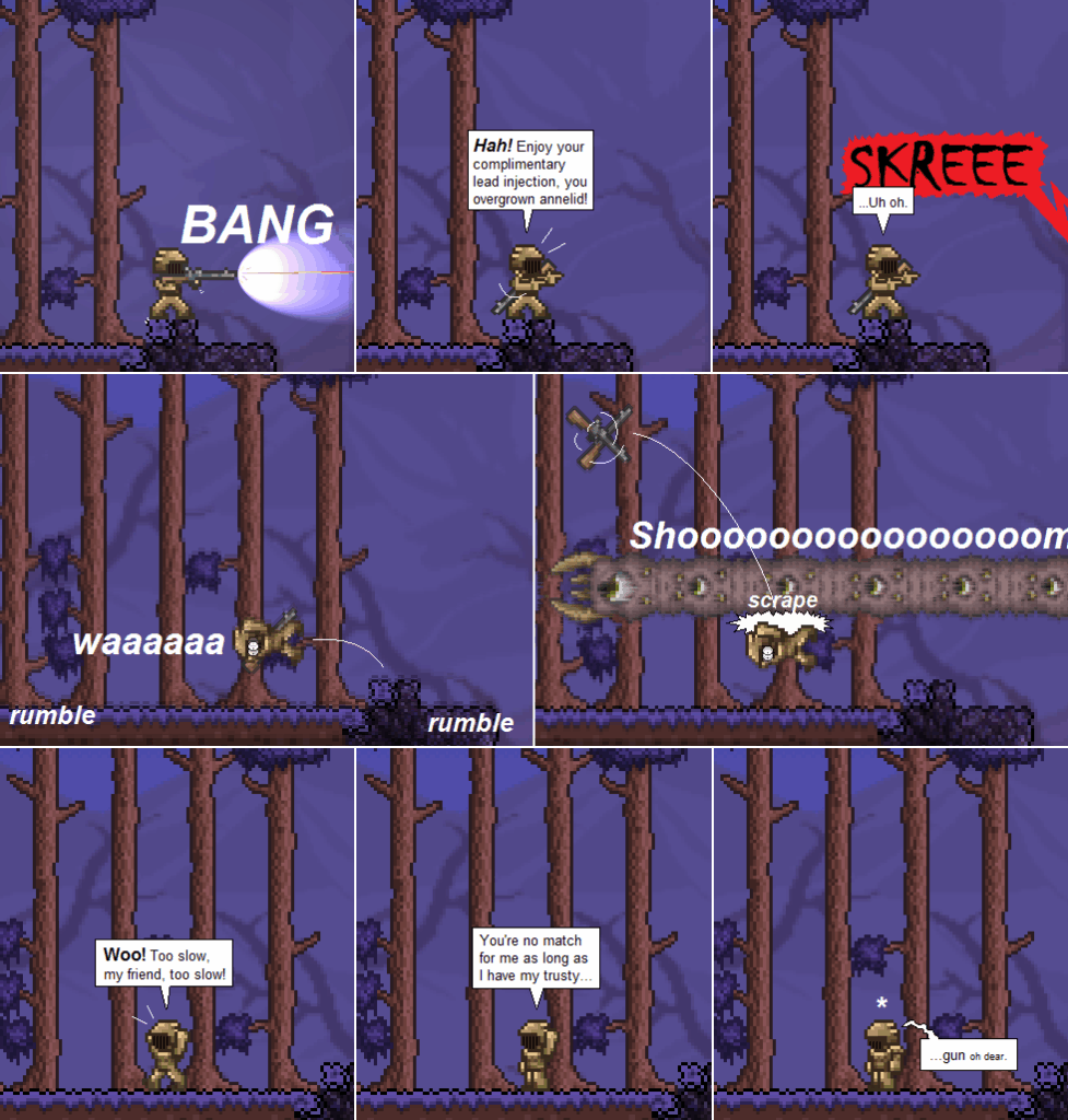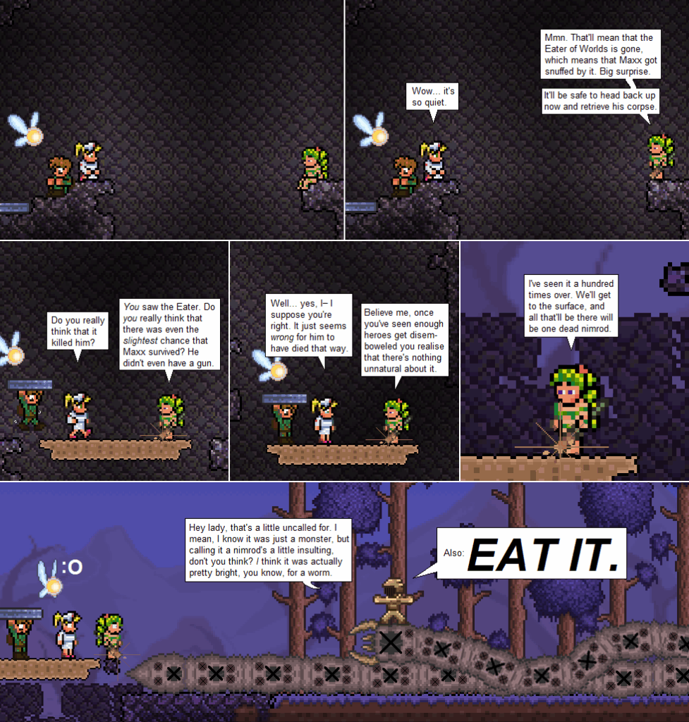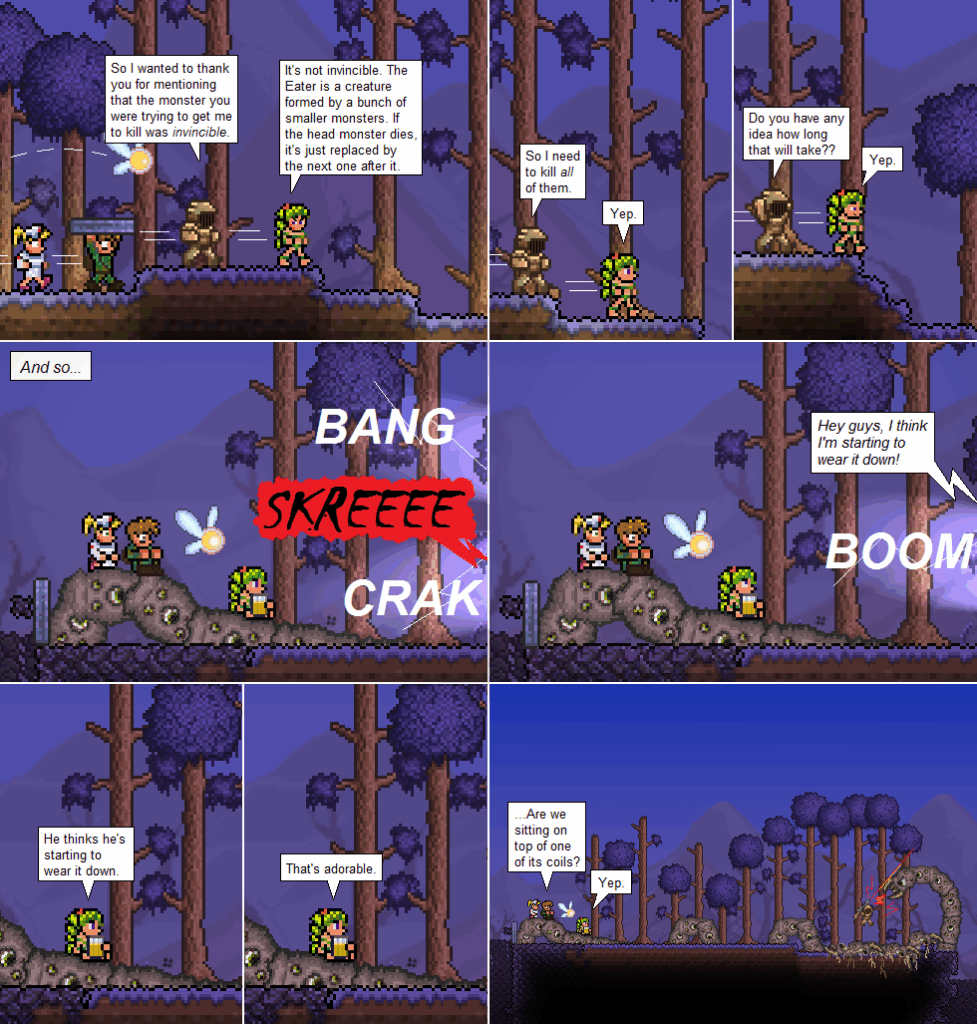 Action comic! I’m really glad that this can’t happen in-game. That would be pretty much the worst thing ever. I like