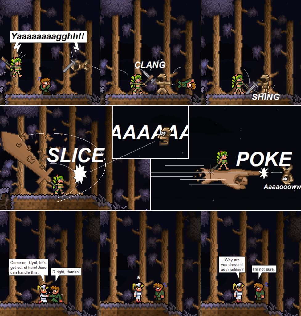 More fighting! Soon this comic will be nothing but action scenes and one-liners. June is like the Green Lantern, but