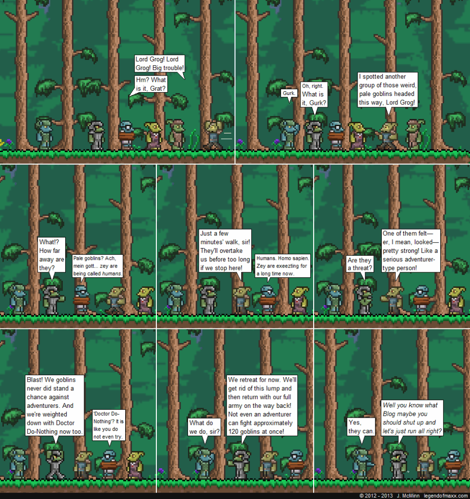 While basing my comic on a game as complex as Terraria does cause some problems– such as with lighting– it
